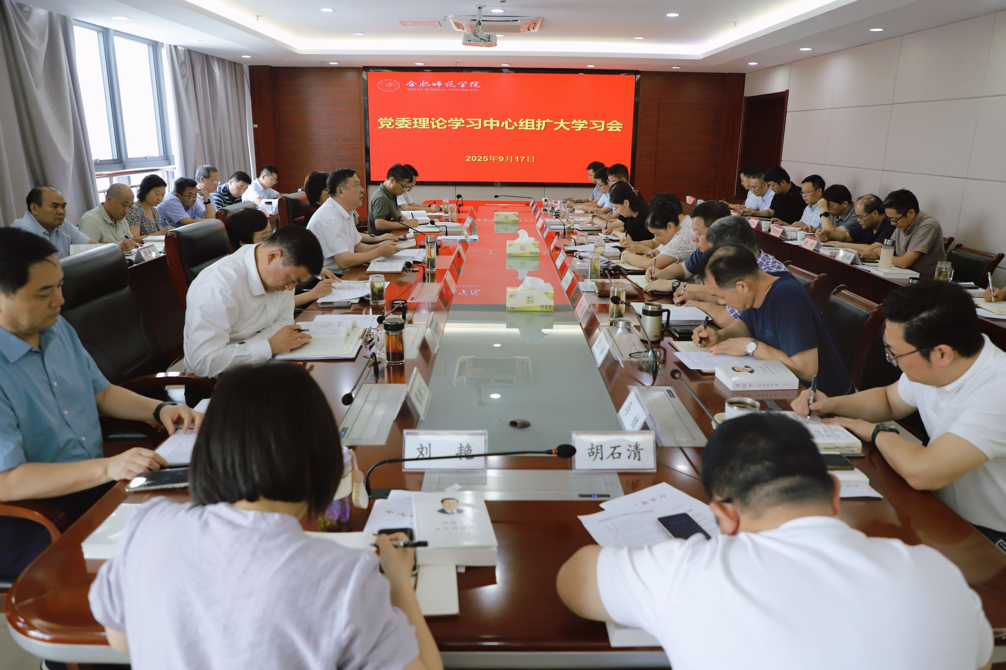 9月17日上午,学院在行知楼2008会议室举行党委理论学习中心组扩大学习会。党委书记徐成钢主持会议并讲话。党委理论学习中心组成员,各院系级党委(党总支、直属党支部)书记,各学院院长,各部门主要负责人参加学习。