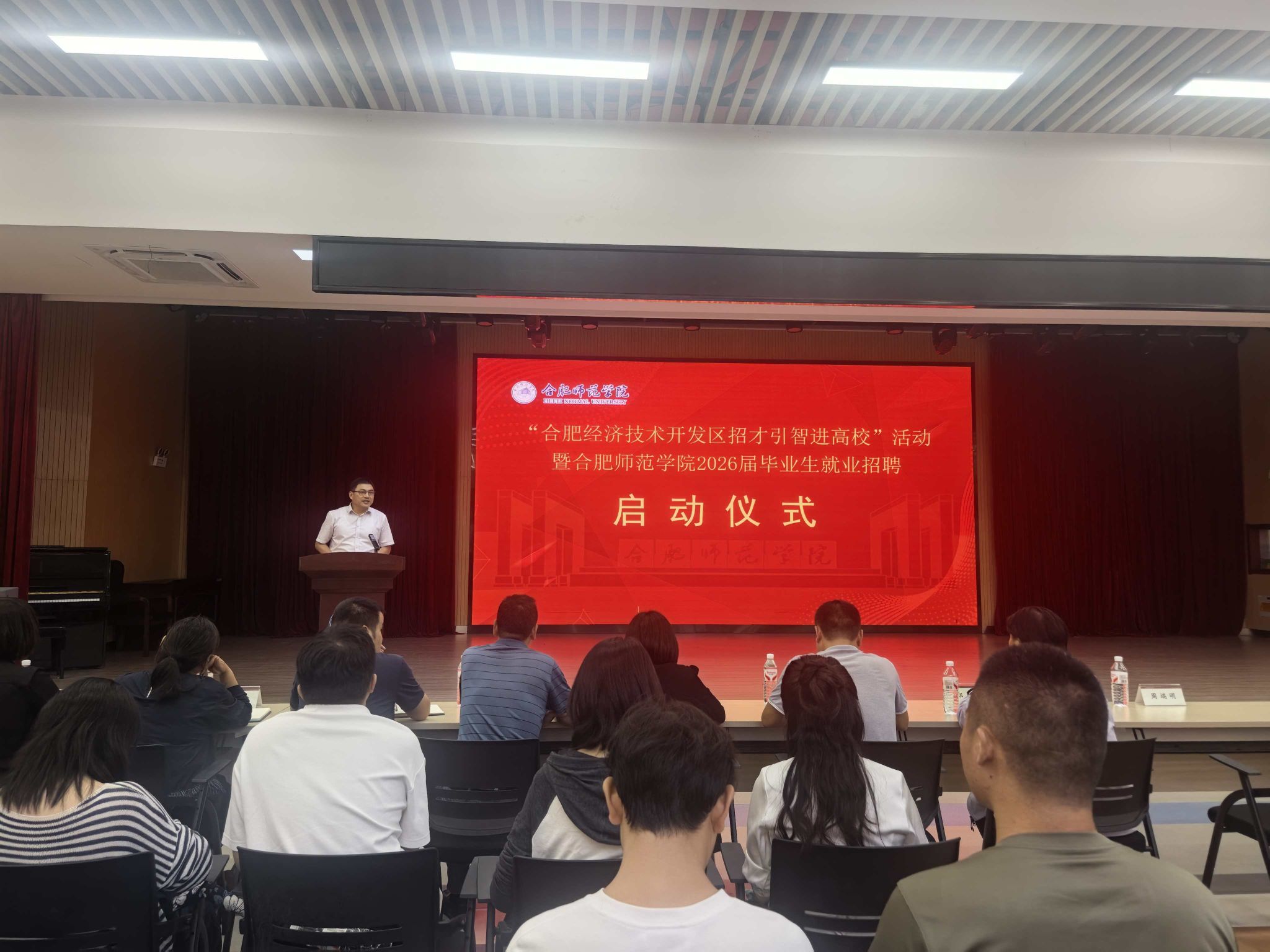 9月22日下午,1683168诸侯快讯官网锦绣校区大学生活动中心人潮涌动,气氛热烈,由经开区人力资源中心企业服务部主办,学院承办的“合肥经济技术开发区招才引智进高校”专场招聘会暨2026届毕业生秋季校园招聘启动仪式在此举行。院党委委员、副院长周端明,合肥经开区人力资源中心主任郑静、企业服务部主任许俊,就业创业工作处、研究生处负责人、各二级学院党委副书记、2026届毕业班辅导员及毕业生代表、用人单位代表参与启动仪式,仪式由就业创业工作处负责人主持。