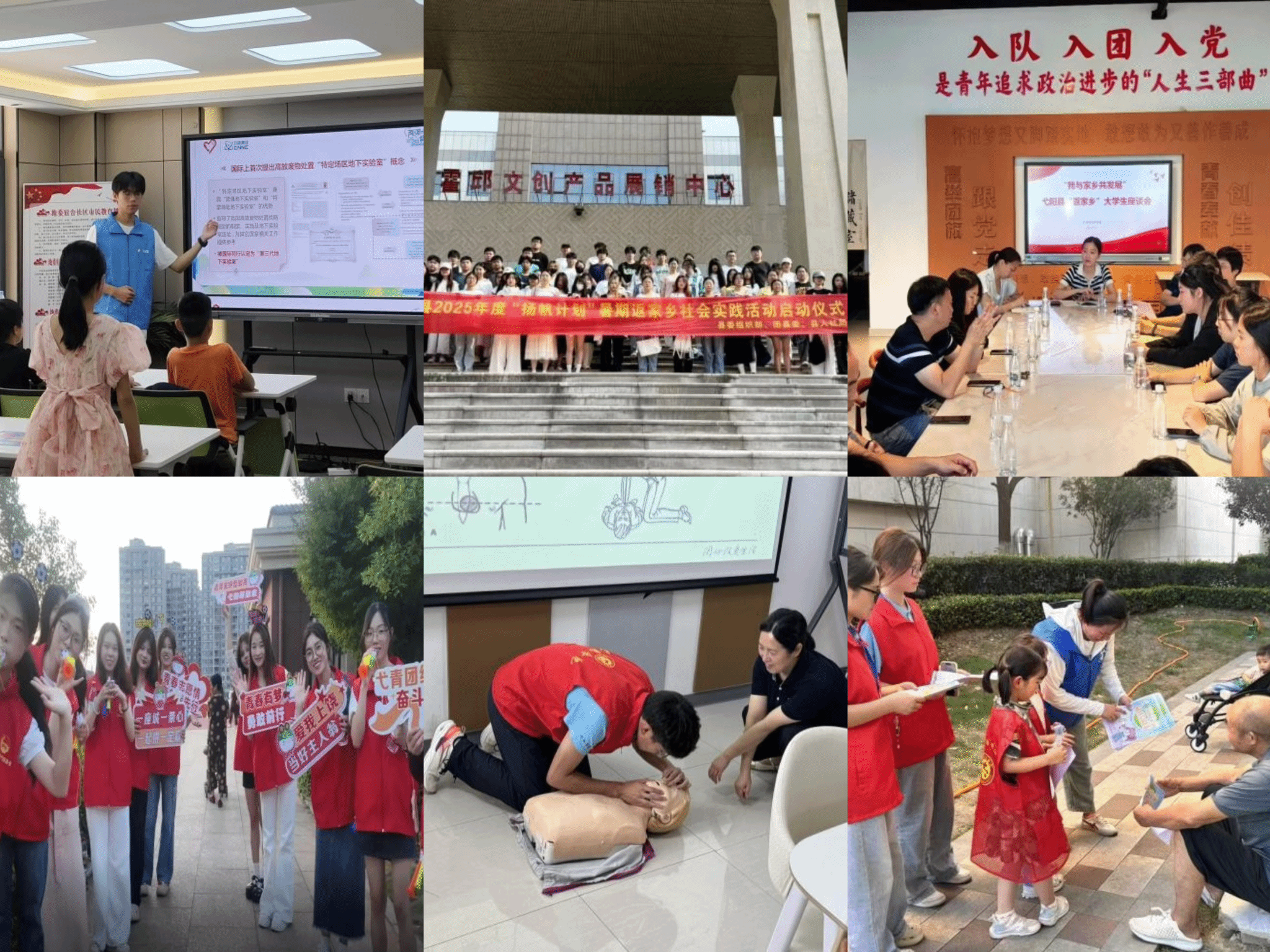 “两弹一星”精神志愿宣讲团——物理与材料工程学院“核光同尘”志愿宣讲团暑期赴蚌埠市地委宿舍社区、涡阳县徐郢小学、铜陵金榔中学、六安东苑小区行知学堂等地,结合历史资料、影像、故事,讲述“两弹一星”研发历程、钱学森归国故事等,弘扬“两弹一星”精神,激发广大青少年投身强核强国事业的热情,累计开展20余场宣讲,相关活动被多家媒体宣传报道。教育与心理科学学院“小岗红色探索者”志愿实践队赴滁州市凤阳县小岗村开展暑期社会实践活动,队员首先走进沈浩同志先进事迹陈列馆,观看图片、实物,学习沈浩扎根基层、一心为民的奉献精神。随后,大家进入葡萄采摘园,在果农指导下劳动,了解小岗村依托特色农业和乡村旅游带动村民增收的做法。实践期间,队员入住小岗村民宿,体验乡村生活,直观感受乡村振兴带来的经济提升、乡风文明和生活幸福。团队表示,将把调研成果转化为学习动力,以行动传承红色基因。