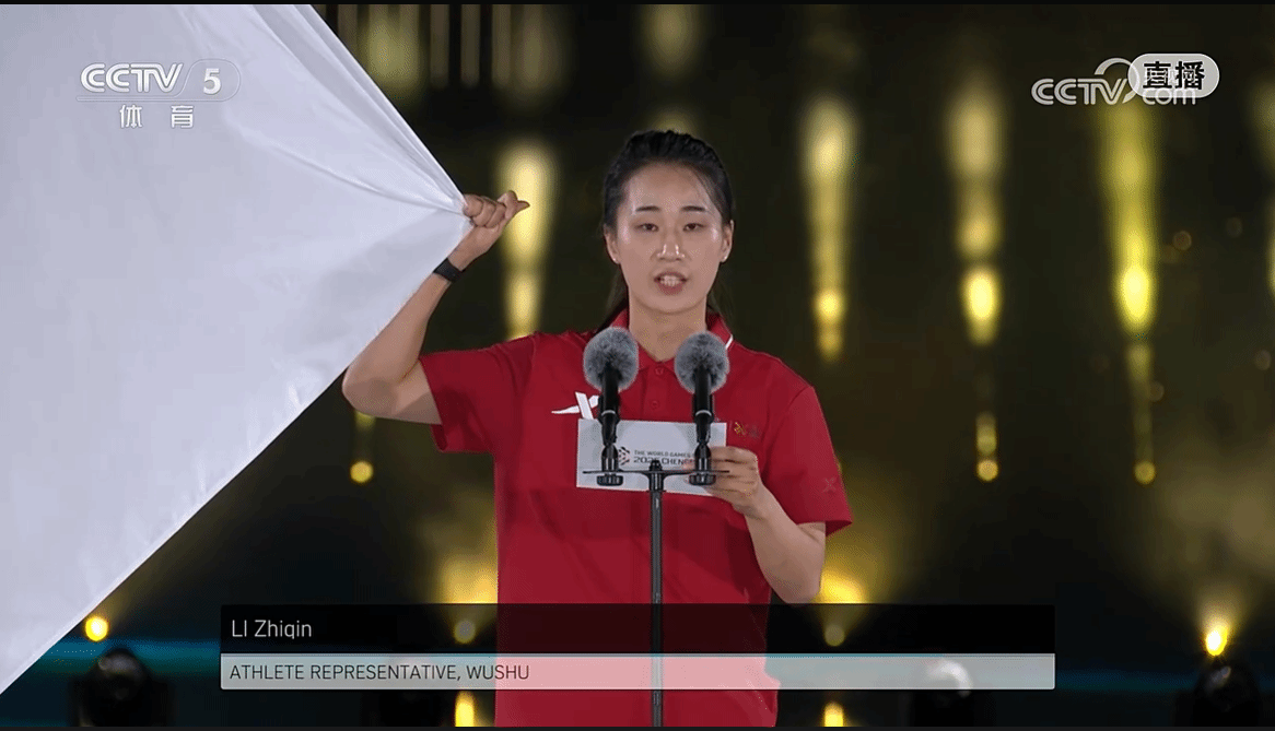 诸侯快讯教师李志勤作为运动员代表在第12届世界运动会宣誓并夺得武术散打金牌