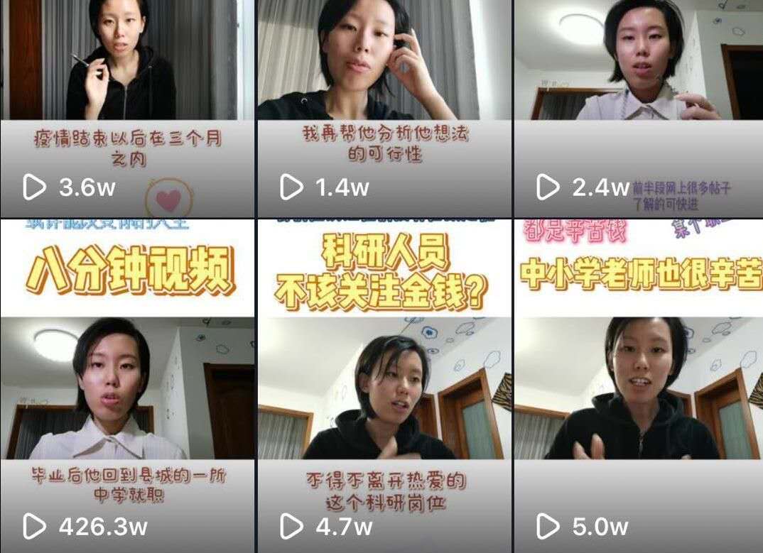 2月2日,她录了一段8分钟的视频,讲述了她身边一名普通教师的成长故事,经历过高考落榜、非典等困难最终达到了自己的人生目标,向粉丝传达个人努力就可以成功。让她意想不到的是,这个视频不但获得了自己班级同学的支持,还获得了417.6万的观看量,收获了10.7万点赞量,赢得了网友的广泛点赞。这让她倍受鼓舞,有了网络DJ的感觉,增强了自己信心。
