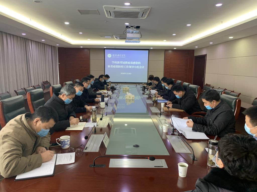 加强组织领导,强化全面部署。校党委及时成立疫情防控工作领导小组,由党委书记徐成钢、校长孙道胜同任组长,其他校领导任副组长,各二级学院党政主要负责人同时为成员,有效保障学校疫情防控工作党委领导、党政齐抓、校院联动。领导小组成立后,迅速启动运行,召开专题会议,系统学习传达上级有关会议和文件精神,全面研究部署和落实各项防控措施,及时制发《切实做好新型冠状病毒感染的肺炎疫情防控工作紧急通知》及相关工作方案,明确暂停集聚活动、禁止提前返校、暂停校园开放、强化宣传引导、密切开展监测、依规应急处置、开展卫生整治、做好开学预案、加强值班值守、严格督促督查等十个方面的重点工作安排,细化任务分解,明晰工作要求,严明工作纪律,压紧压实责任。为强化任务落实,校领导带头深入校园,检查督导,有力推进学校防控工作迅速、全面、有序展开。