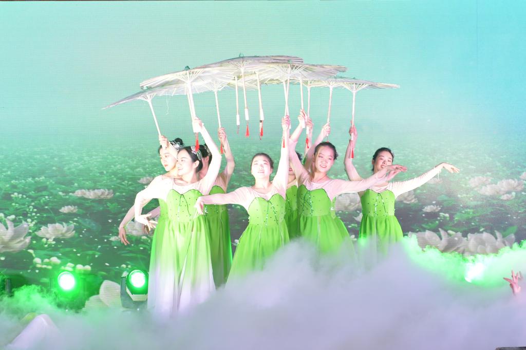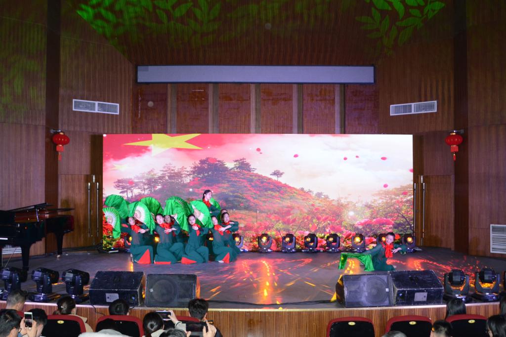 音乐学院民乐团的合奏《喜洋洋》,营造了喜庆、美好、温暖、和谐的氛围,拉开了晚会的序幕。教师教育学院的舞蹈《茉莉花开》,舞步轻盈,带来一阵清新的气息。来自滨湖校区的院团委学生干部们豪迈的朗诵《四季行知》,让观众们仿佛跟随着陶行知先生的脚步走过四季,歌颂了合师人对于行知精神的弘扬和传承。十佳歌手带来歌曲串烧《岁月金曲》,用四首不同时期的经典歌曲演绎了中国人民从站起来到富起来,再到强起来的光辉历程,展现了进入新时代的青年朝气蓬勃、积极奋进的精神风貌。大学生艺术团的现代舞《青禾》,用优美的舞姿展现青禾在逆境中成长,表达了奋斗、朝气、希望的元素。音乐学院学生党支部的合唱《七子之歌》《红旗飘飘》,用天籁之音庆祝澳门回归20周年,表达作为一名中国人深厚的爱国情怀和强烈的民族自豪感。SKY街舞社的街舞《Dream of the motherland》,动感的节奏、时尚的舞步,向以钱学森为代表的海归知识分子们致敬。教师教育学院王磊老师和唐银老师的歌曲《不忘初心》,歌声动人心弦、激越昂扬,引起在场每一位观众的共鸣。体育科学学院的民族舞《映山红》,淋漓尽致展现出合师学子一心向党、勇担使命的责任感。新年晚会在院学生会的歌曲《我和我的祖国》动人的歌声中落下帷幕。晚会现场,一面面鲜艳的五星红旗、一首首动听而熟悉的红色歌曲,营造出浓烈的爱国氛围,鲜明地体现了庆祝新中国成立70周年的主题,为全体观众上了一堂生动的思想政治理论课。