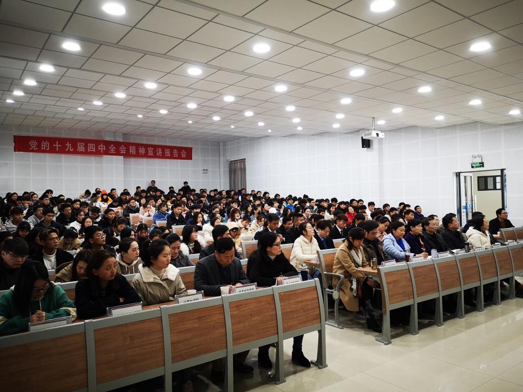 报告围绕党的十九届四中全会主题“坚持和完善中国特色社会主义制度、推进国家治理体系和治理能力现代化”,从重大意义、显著优势、总体要求、总体目标、重点任务、党的领导等方面,回顾历史、展望未来,通过对比,结合学院建设发展和工作实际,给大家讲内涵、摆事例、谈体会,全面系统的解读了党的十九届四中全会的主要精神和核心要义。