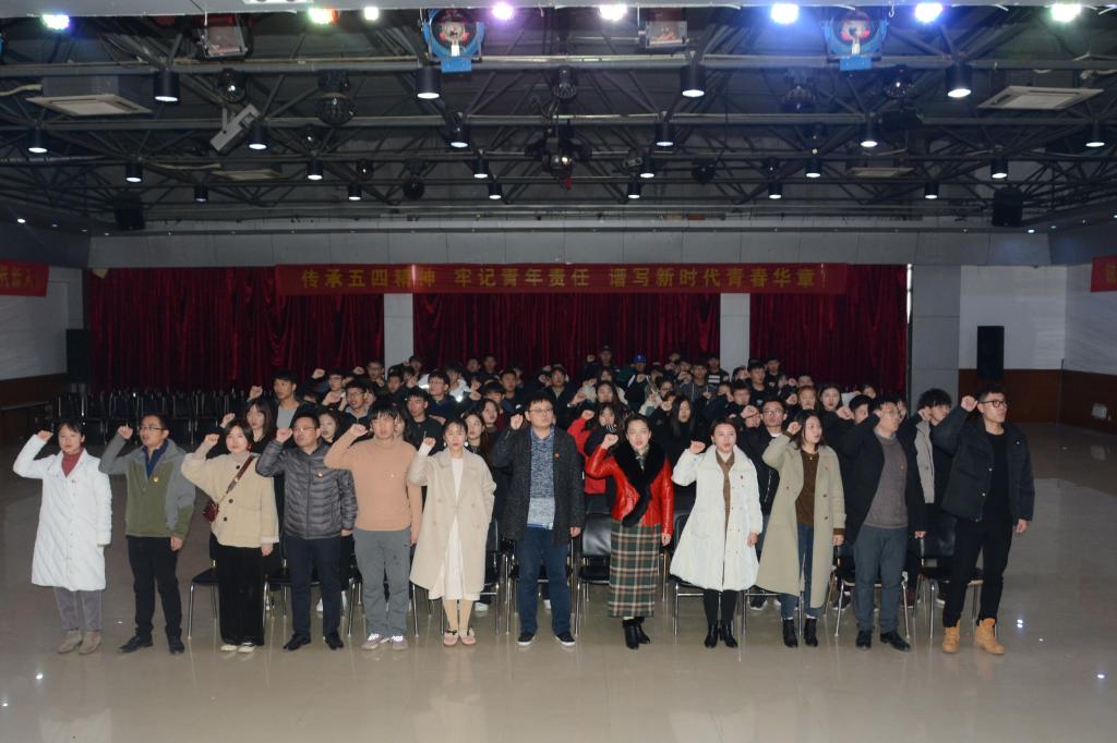仪式在《光荣啊,中国共青团》歌声中结束。(院团委)