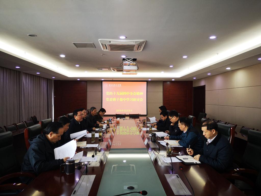 本网讯 12月5日上午,学院召开党的十九届四中全会精神党委班子集中学习研讨会。学习研讨会由院党委书记徐成钢主持,党委班子成员,非党员院领导,办公室、纪委办主要负责人参加学习研讨。
