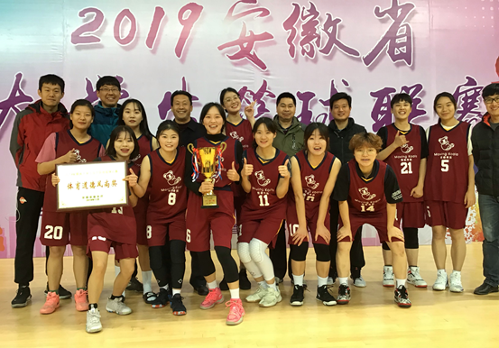 本网讯 11月29日,由省教育厅主办、安徽工业大学承办、安徽省学校体育卫生协会协办的2019年安徽省大学生篮球比赛女子甲组决赛在安徽工业大学体育馆举行。最终,我院公体女子篮球队获得女子甲组冠军,并取得代表安徽省参加2020全国大学生篮球联(CUBA)阳光组的参赛资格。