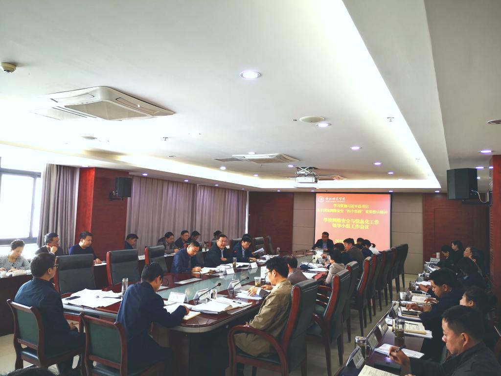 本网讯 10月30日上午,学院在锦绣校区第二会议室召开学习贯彻习近平总书记关于网络安全“四个坚持”重要指示精神专题会议,党委书记徐成钢主持会议并讲话,党委副书记、院长孙道胜,党委副书记、副院长李进华,党委副书记吴昕春出席会议,学院网络安全和信息化工作领导小组成员单位主要负责人参加会议。