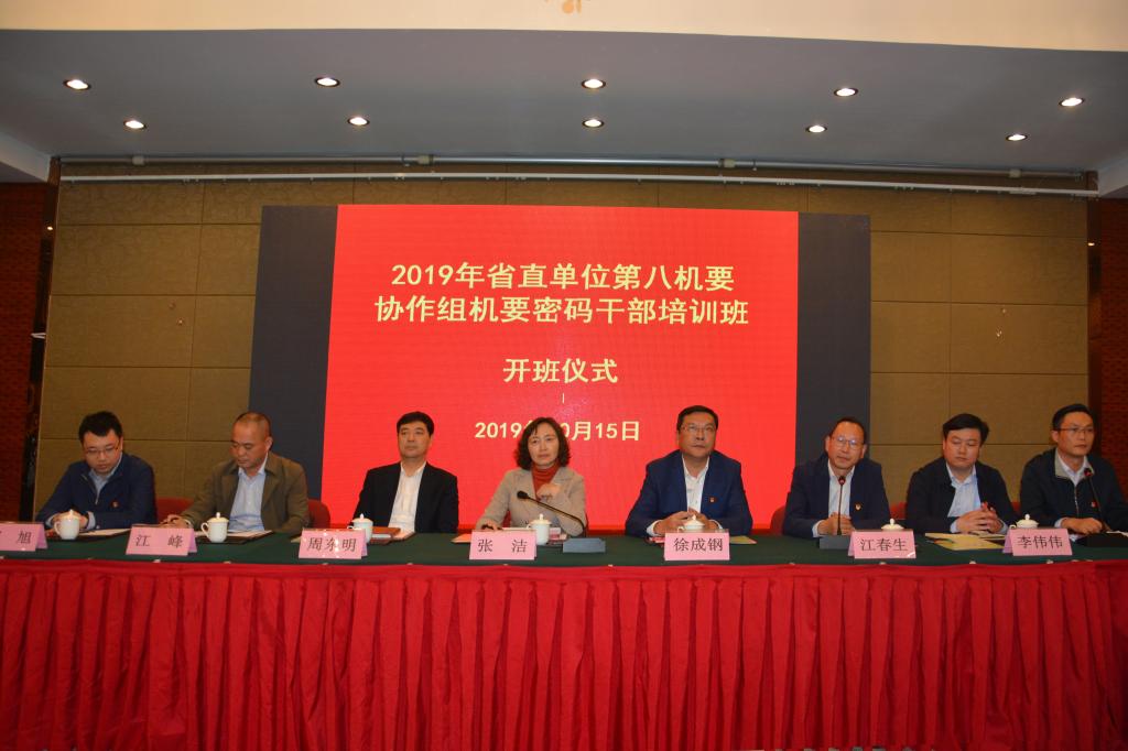 本网讯 为深入学习贯彻习近平新时代中国特色社会主义思想和党的十九大精神,全面提升新时代机要密码干部政治素养和业务能力,10月15-16日,我院作为组长单位主办的2019年省直单位第八机要协作组机要密码干部培训班在岳西县委党校顺利举行。我院党委书记徐成钢,省委机要局副局长张洁,安庆市委常委、岳西县委书记周东明,岳西县委副书记、县长江春生,岳西县委常委、统战部部长、县直工委第一书记江峰,岳西县委常委、副县长李伟伟,省委机要局第八协作组联络员郭旭等出席开班仪式。省纪委办公厅、省委组织部、省委网信办、省残联、省应急厅、省地矿局、省农科院、大唐安徽发电、东方资产、东方航空、华安证券和我院等12家协作组成员单位全部派员参加。诸侯快讯办公室、纪委办、组织部、人事处等单位涉密管理岗位工作人员也全程参训。