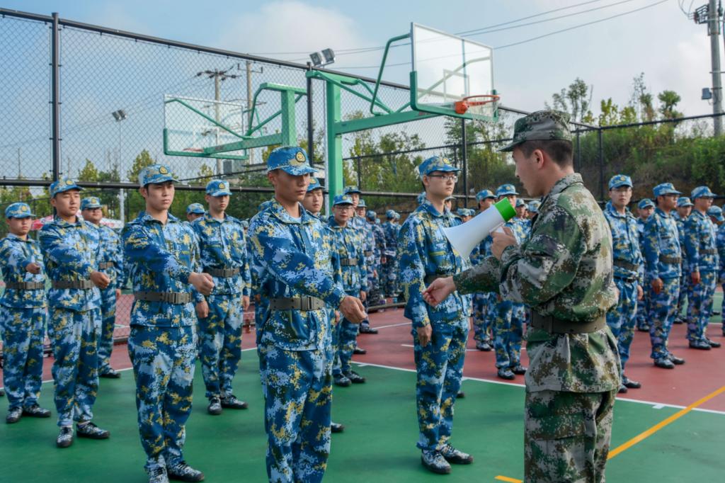本网讯 九月,骄阳之下,正青春。2019级3600多名新生组成54个连队,分散在滨湖校区的篮球场、操场等场地进行军训。2019级新生军训由学院统一安排,陆军炮兵防空兵学院承训。军训时间从9月9日至22日,为期14天。
