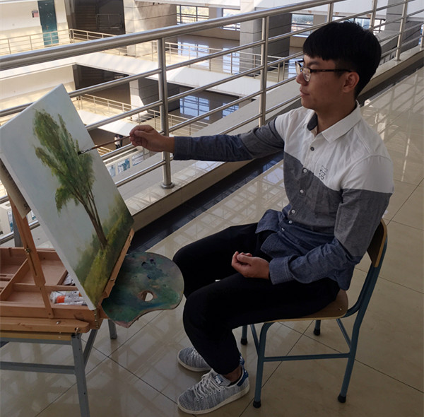 王嘉伟像一块海绵,不断在学习中吸收养分丰富自我。他不仅是学业和综测成绩双第一,还积极参加全国设计大赛,组建大学生创新团队,到校外设计工作室实习实践,作品《印象唐模》被元峰工作室收藏,《竹林幽静》《落日余晖》等作品也被音乐之声工作室收藏。他用一个跨越为自己的大学生涯涂抹上一串串美丽的梦幻色彩,让青春成为一段勇于奋斗的佳话。