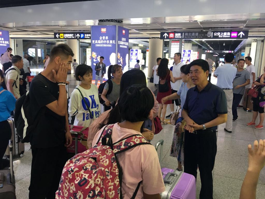 中午,徐成钢和吴昕春分别赴合肥南站、合肥站看望慰问接站的老师和志愿者。徐成钢对接站的师生表示慰问,指出,接站的老师和同学是新生开启大学生活见到的第一人,也是新生和家长对学校的第一印象,希望参与此项工作的师生全力做好热情、周到的服务。