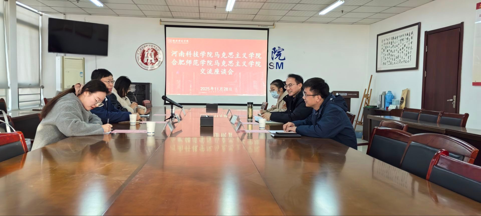 11月28日下午,河南科技学院马克思主义学院副院长张希中一行3人,围绕思政课建设、学科发展、人才培养等议题来院开展座谈交流。马克思主义学院副院长方政、习近平新时代中国特色社会主义思想概论教研室主任张军占及教学秘书高欢参加座谈会。
