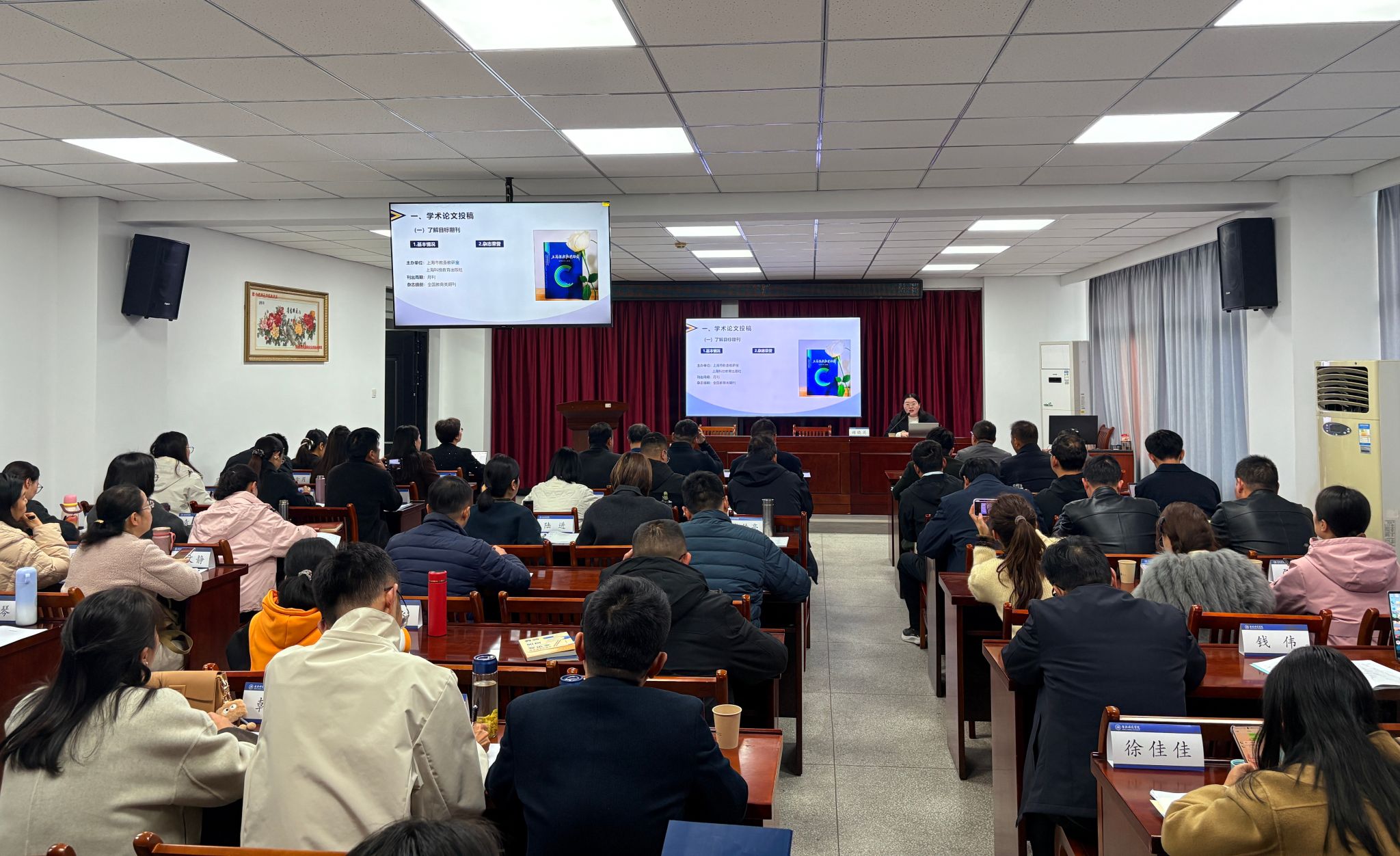 本次培训为期5天,以“教育教学研究与教师校长发展”为主题,综合运用主题引领、理论导学、经验分享、专家指导等培训形式,聚焦学员专业成长。培训班邀请省教育科学研究院课题领域专家、中小学校专家围绕教育教学成果培育、课题研究和论文写作与发表等开展专题讲座,邀请沪苏浙皖五家期刊主编与大家面对面交流,邀请高校和省教科院专家对学员提交的课题申报书和教科研论文逐一进行分组指导,同时,搭建学员交流分享的平台,交流学员在上海、江苏和浙江的跟岗研修感悟和本次集中研修心得,在互动中实现经验共享、智慧共生。