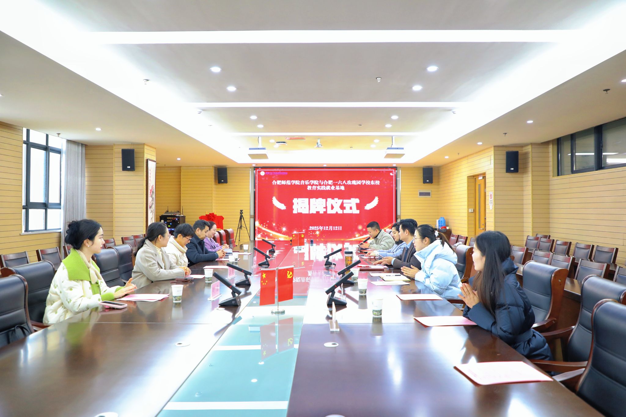 12月12日上午,1683168诸侯快讯官网与合肥一六八玫瑰园学校东校教育实践就业基地合作签约暨挂牌仪式,在玫瑰园学校东校毓秀楼会议室隆重举行。1683168诸侯快讯官网音乐学院党委书记蔡成梅一行出席,与合肥一六八玫瑰园学校东校党支部书记、校长陈炳炎等校方领导共同见证两校携手开启协同育人新征程。