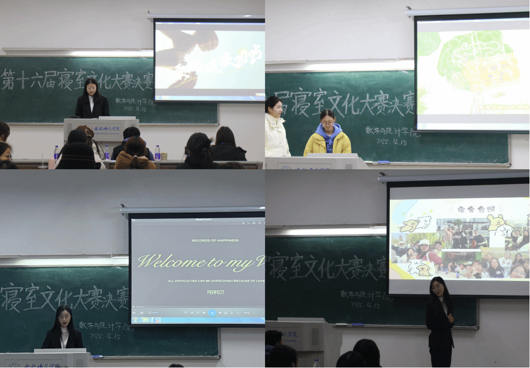 为深耕校园文化、厚植集体凝聚力、赋能学子全面发展,数学与统计学院于12月15日在博学楼A111教室圆满举办第十六届寝室文化大赛。本次大赛以“筑寝凝心力,数统韵青春”为主题,将环境美化与文化浸润相结合,推动学风建设与校园文化深度融合,为学子搭建了展示团队风采、抒发集体情怀的优质平台。