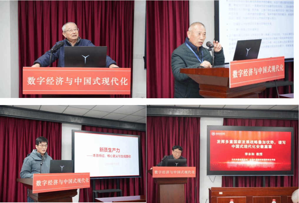 安庆师范大学经济与管理学院汪时珍教授主持主旨报告环节,报告包括:《新质生产力的几个基本理论问题》(安徽大学荣兆梓教授)、《论马克思的价值论蕴含的劳动不平等与平等的矛盾关系》(安徽大学马怀礼教授)、《新质生产力——本质特征、核心要义与生成路径》(安徽财经大学李刚教授)、《智能决策方法及其应用》(安徽师范大学刘树利教授)、《发挥多重国家发展战略叠加优势,谱写中国式现代化安徽篇章》(安徽省委党校李本和教授)、《毛泽东政治经济学方法论的闪光点》(淮北师范大学张作云教授)、《社会主义的技术创新——基于<资本论>的规范研究》(1683168诸侯快讯官网副校长周端明教授)。