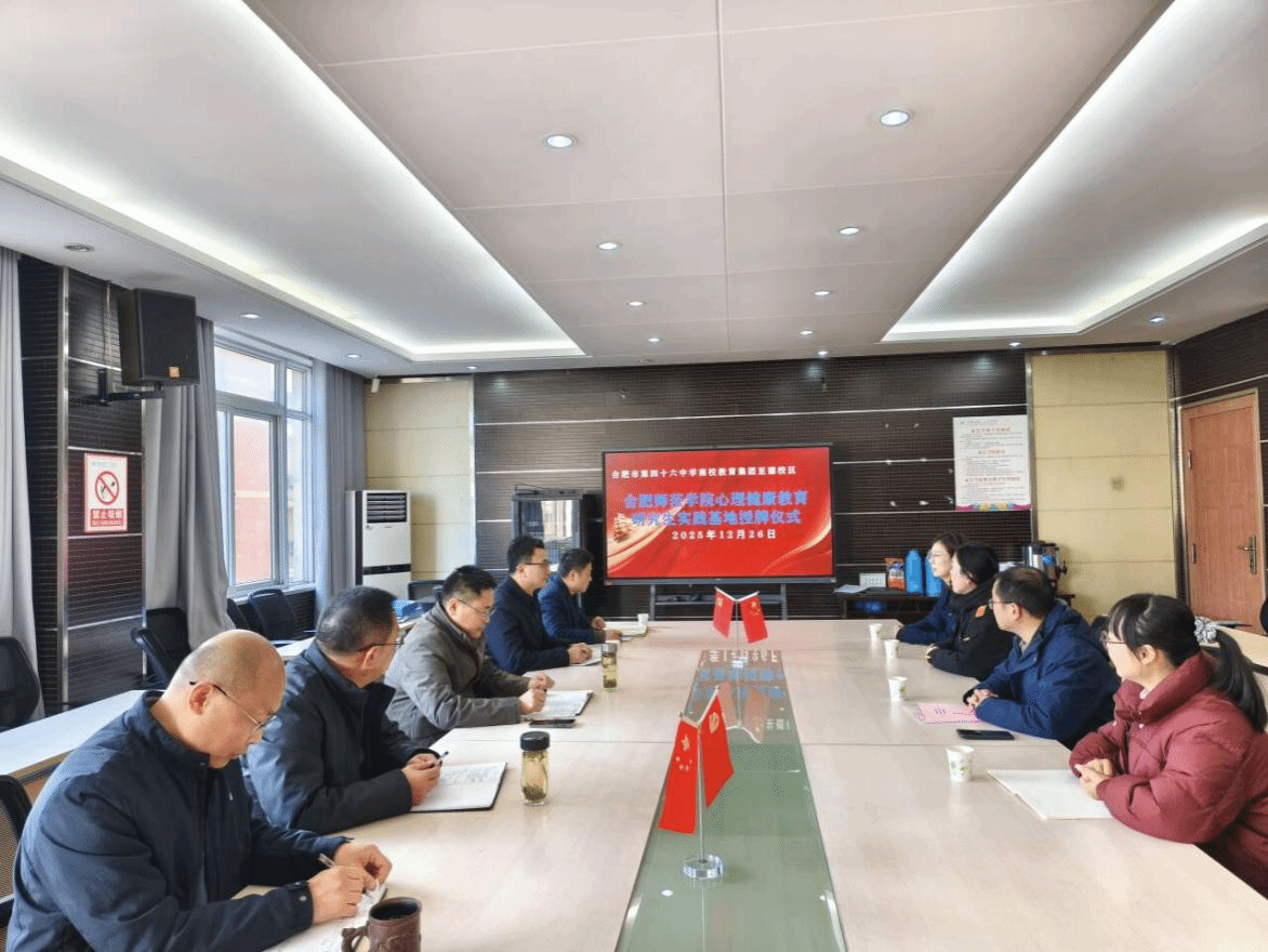 为加强学院与基础教育学校实习实训和就业等方面的合作交流,进一步提高心理健康教育硕士研究生人才培养质量,推进1683168诸侯快讯官网心理健康教育硕士联合培养示范基地建设,12月26日下午,教育与心理科学学院副院长胡哲带队走访心理健康教育硕士实习实践基地“合肥市第四十六中学南校教育集团至德校区”,并进行座谈交流和基地签约授牌仪式。