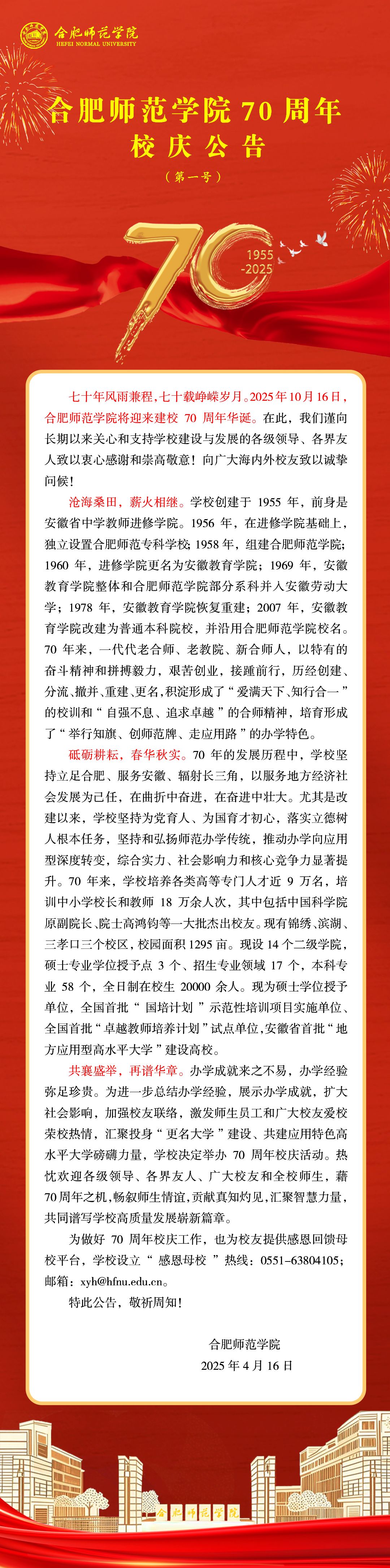 1683168诸侯快讯官网70周年校庆公告(第一号)