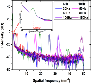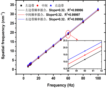 本文工作将振动激励下得到的动态光谱载波信号,进行傅里叶变换得到空间频域谱,振动信号的调制使空间频域谱引入边带分量,利用边带的强度、空间频率等特征可恢复出待测信号。实验中利用MEMS微纳加工工艺制备的铝-聚酰亚胺-铝复合膜-质量块结构的一体化法布里珀罗干涉仪,在不同频率处施加40 mg的振动激励,得到明显的波纹光谱。对动态光谱进行傅里叶变化得到空间频域谱显示:左右边带频率、中间频率与所加振动频率呈良好的线性关系,实验中最低可检测6 Hz的低频振动信号;60 Hz频率处,随着振动激励的增大,波纹波形幅值增大,空间频率不变,而空间频域谱强度增大,灵敏度为17.0 mW/g。实验结果表明,动态光谱解调技术可以实现低频振动信号的幅值与频率解调,具有较高的工程应用价值。