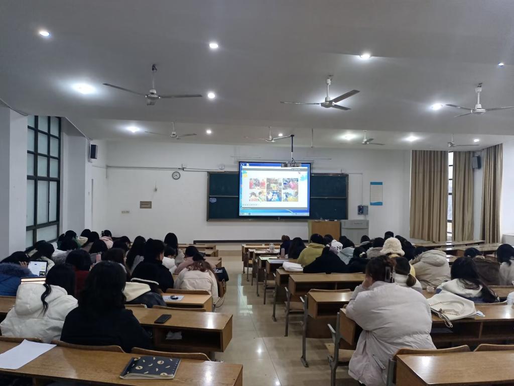 本网讯 12月7日下午,安徽省特级教师、合肥市星海幼教集团理事长李莹在博约楼108教室围绕“幼儿园区域游戏组织和实施”的主题,开展线上、线下同步学术报告,学前教育专业全体学生和部分教师一同聆听了讲座。