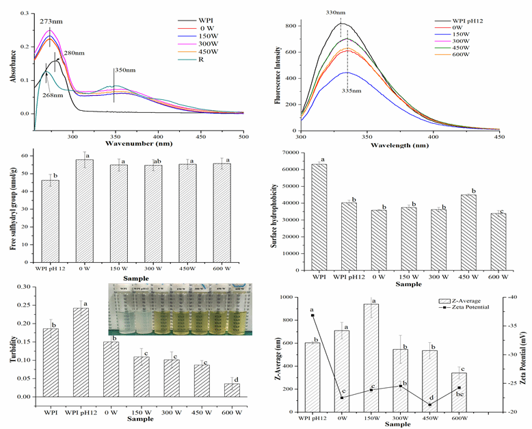 芦丁是一种具有生物活性的多酚,其水溶性差和生物利用率低限制了芦丁在食品工业中的应用。论文研究超声辅助促进芦丁与乳清分离蛋白的相互作用。研究发现芦丁与乳清分离蛋白之间形成共价作用,超声处理提高了乳清分离蛋白与芦丁的结合量和溶解度,降低复合物的粒径和表面疏水性;此外,超声处理促使复合物的二级结构变得更有序,形成了孔径小而均匀的立体网络结构。