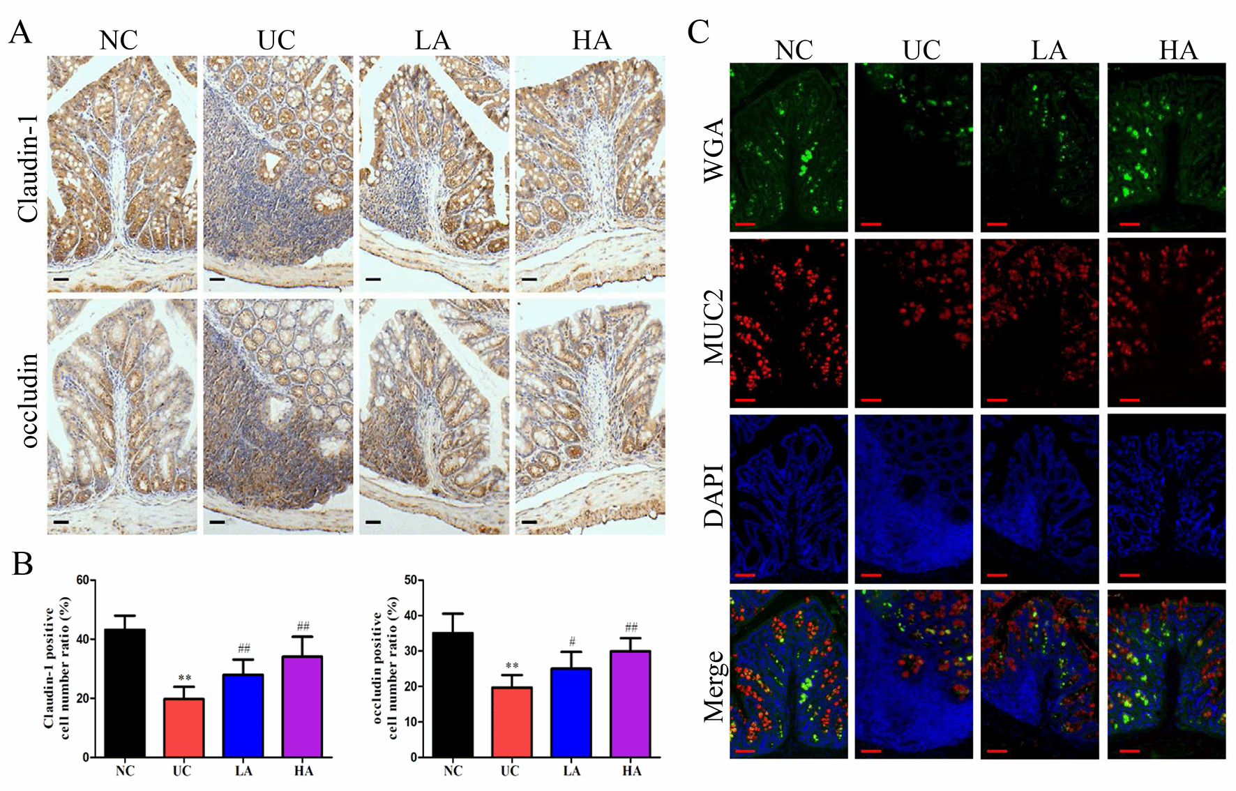 图1 AT可改善UC小鼠结肠屏障功能