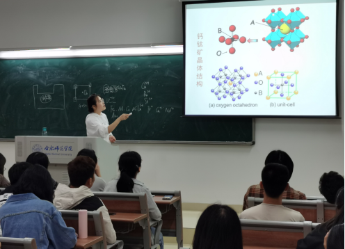 本网讯 9月22日下午,“行知讲堂”学术报告在滨湖校区博学楼A108教室举行。本场报告由物理与材料工程学院谢长征老师主讲,主题为“钙钛矿材料物性调控及其应用”,2019级新能源材料与器件专业学生聆听了学术报告。