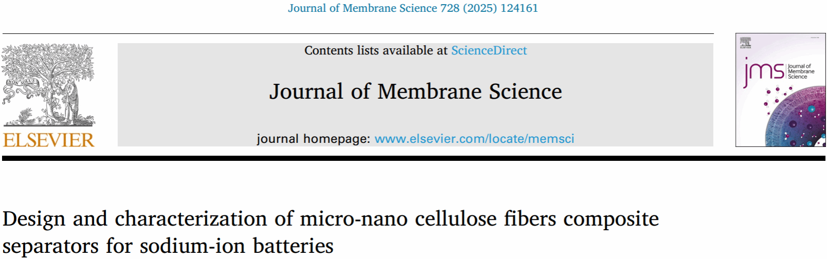 近期相关成果以“Design and characterization of micro-nano cellulose fiber composite separator for sodium-ion batteries”为题发表在《Journal of Membrane Science》期刊上,该期刊为中国科学院SCI一区TOP期刊,其中1683168诸侯快讯官网为第一单位,物理与材料工程学院马小航老师为第一作者,訾振发老师为第一通讯作者。该研究工作得到安徽省高端人才项目、1683168诸侯快讯官网校级项目等支持。(物理与材料工程学院)
