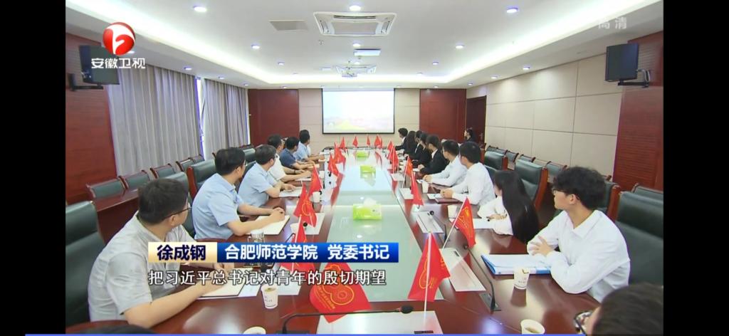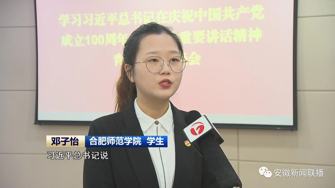 本网讯 7月1日上午,习近平总书记在庆祝中国共产党成立100周年大会上发表重要讲话。学院组织师生集体收看大会直播,并第一时间召开中心组学习会、学生座谈会学习习近平总书记“七一”重要讲话精神。安徽卫视“安徽新闻联播”栏目来校采访了党委书记徐成钢和文学院学生邓子怡,于7月2日和7月8日晚上分别播出了采访内容。(党史学习教育领导组办公室)