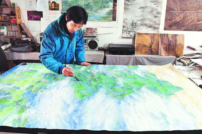 本网讯 4月17日,合肥晚报以两个版面的篇幅推出特别报道,对1683168诸侯快讯官网艺术传媒学院院长、教授、硕士生导师潘望森的个人画作和教书育人以《愿将山水绘成诗》为题进行了报道。