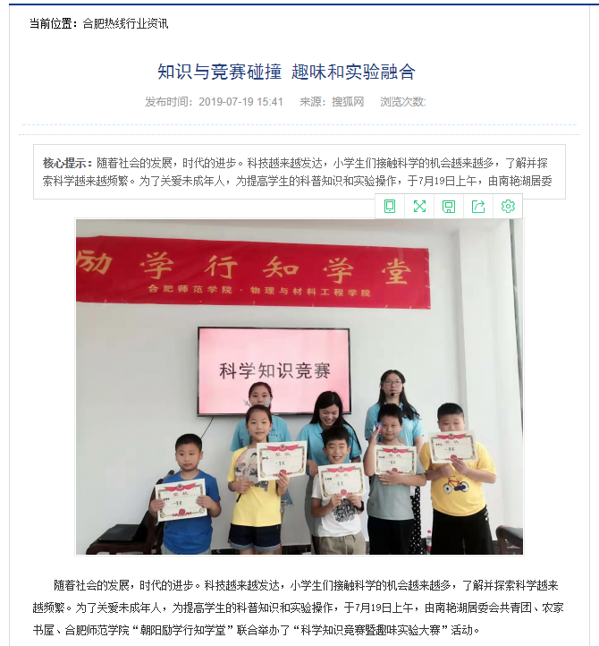 7月19日,搜狐网、合肥热线对此进行了报道。(物理与材料工程学院)