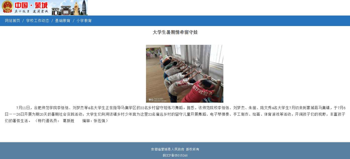 蒙城广播电视台“蒙城发布”、蒙城县人民政府网等对此进行了报道。(新闻中心)