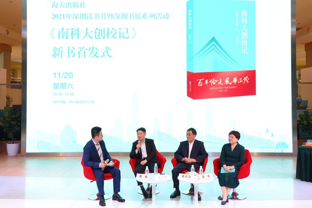 2021年11月20日在深圳中心书城《南科大创校记》发布会上,沈清华(左二)应邀与南科大创建亲历者梁北汉、高教研究者沈红教授对谈