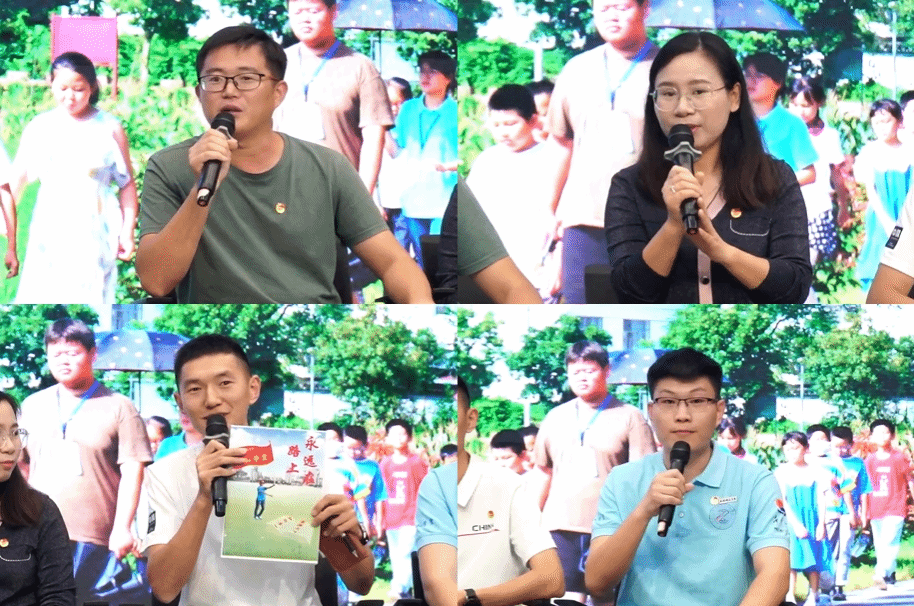 “安徽省青年志愿者优秀个人”、体育科学学院2017届校友曹旺旺分享自己从农村的家乡走出去、毕业后又回去服务家乡的经历。他展示了将“行知学堂”实践活动中形成的经验与认识总结成的6万多字实践材料,从学堂建设、教学技巧、团队协作等方面给学弟学妹们提供了使用建议。他表示,要“干一行,爱一行,精一行”“我希望孩子们学时认真,玩时尽兴”,并呼吁小先生们要“千教万教,教有所爱;千学万学,学有所获”。