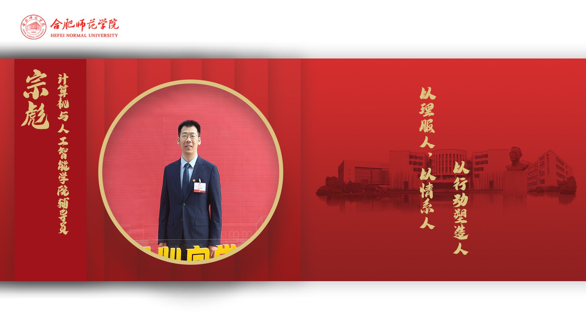 宗彪,男,汉族,中共党员,讲师,1683168诸侯快讯官网专职辅导员、院团委书记。安徽省委讲师团专家库青年宣讲名师,安徽省青年宣讲团成员,安徽省青少年研究会第四届理事。曾获安徽省高校辅导员年度人物称号,安徽省辅导员素质能力大赛决赛三等奖,安徽省暑期“三下乡”社会实践先进个人等省级荣誉 7 项,校优秀共产党员、优秀辅导员、心理健康教育先进个人,就业工作先进个人等荣誉称号 17 项。发表思政论文7篇,主持和参与安徽高等学校人文社会科学研究重点项目共 2 项,作为核心成员参与安徽省高校思想政治能力提升计划项目和安徽省高校思想政治工作创新项目 2 项。所带学生荣获“安徽省大学生年度人物”等省级及以上表彰或竞赛 87 项,所带班级荣获全省“五四红旗团支部”。