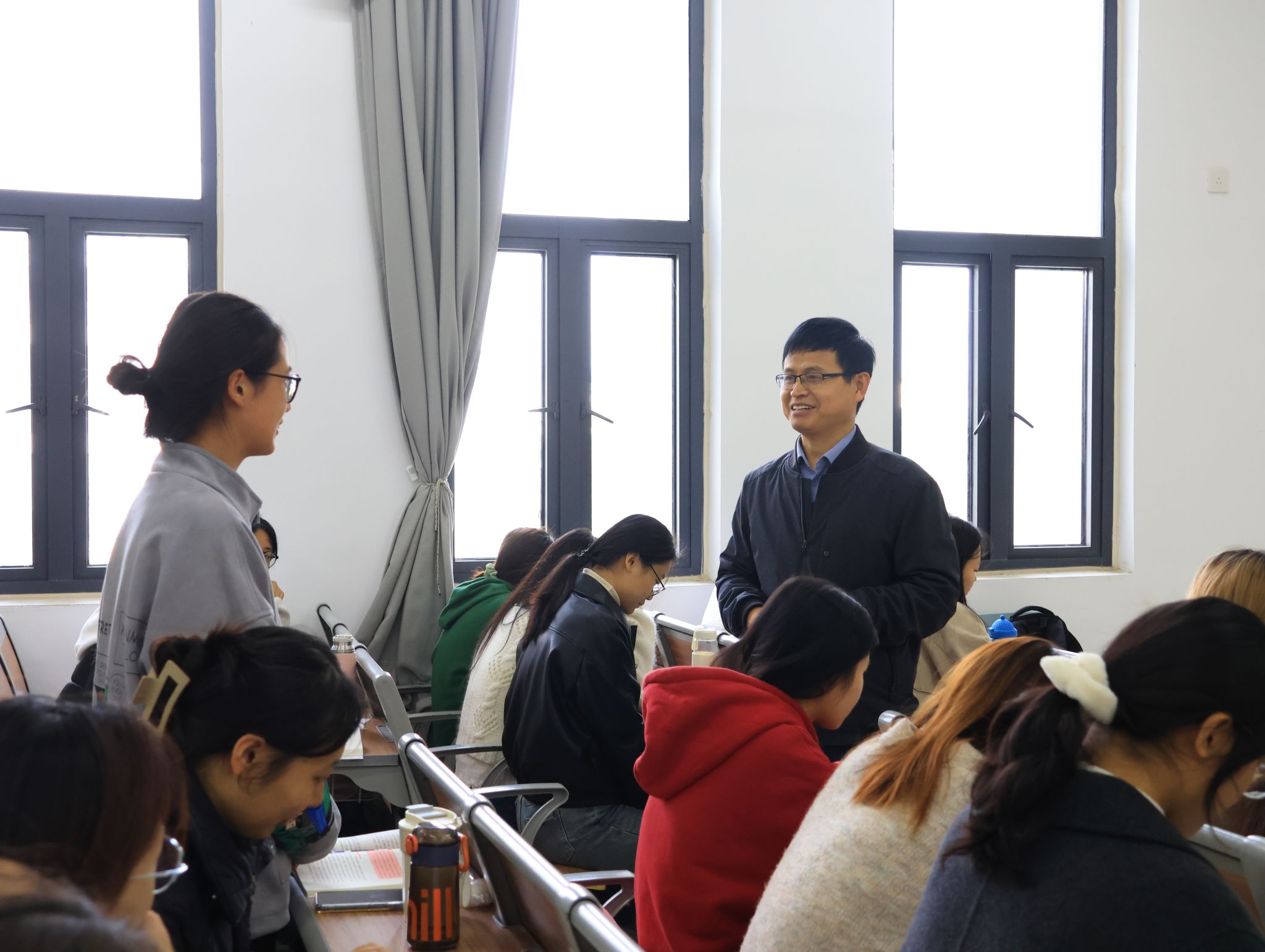 校内的专家讲座,陈保同也从来不放弃学习交流的机会。“要结合所教、所学,瞄准社会需求,提出胸怀‘国之大者’的大命题”,一次学院邀请华中师范大学教授龙静云来校开展讲座,龙教授给了陈保同很多指导。