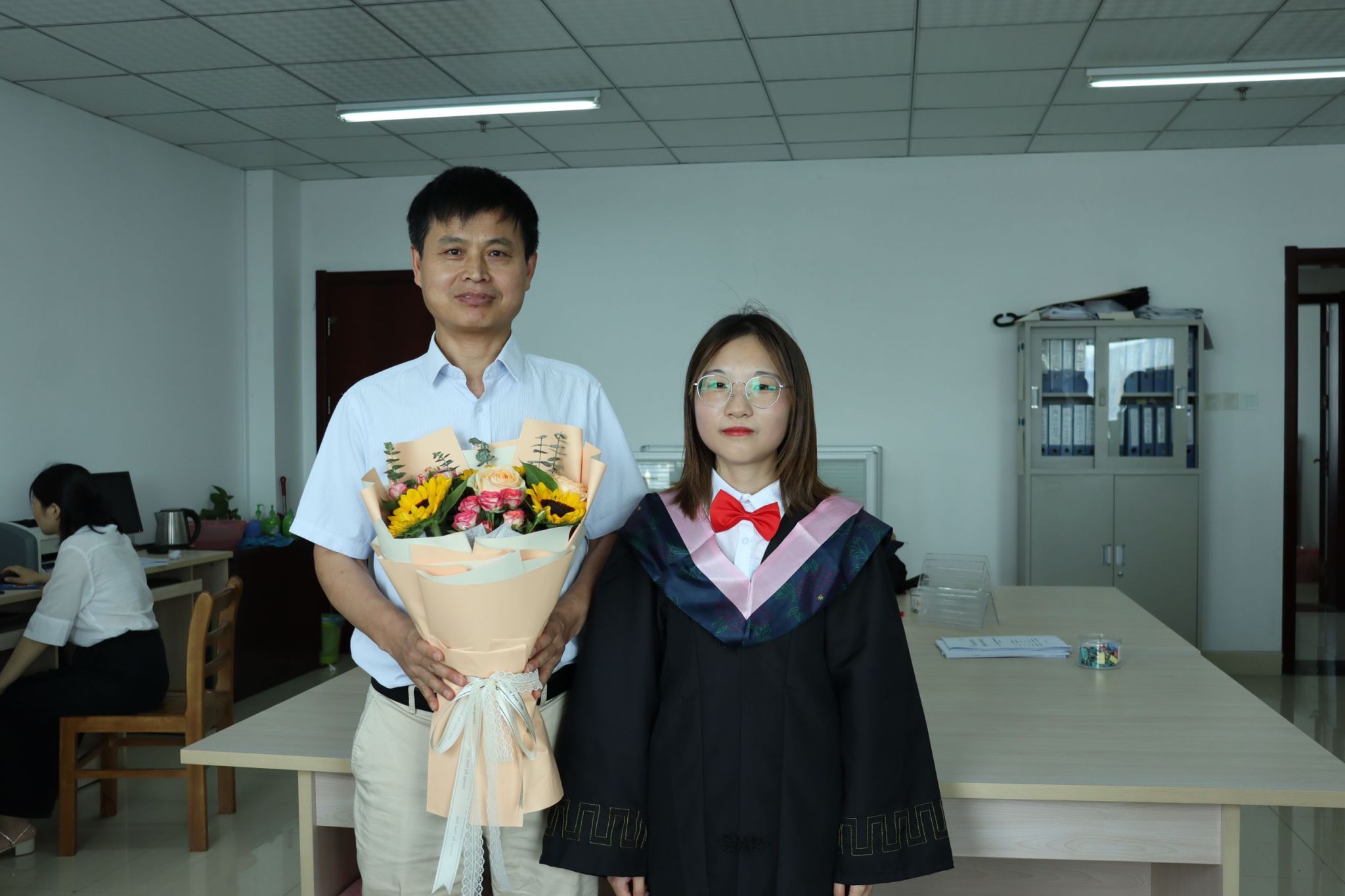 吴秋萍是马院2017级思想政治专业的学生,毕业后前往亳州涡阳县,成为一名农村中学的特岗教师。“工作三年后,我申请了学费代偿,需要填表、盖章一系列的手续,我试着联系了一下陈老师,陈老师二话不说帮我把手续全部办好了,真的特别感谢他”,谈到陈保同,她特别感激。